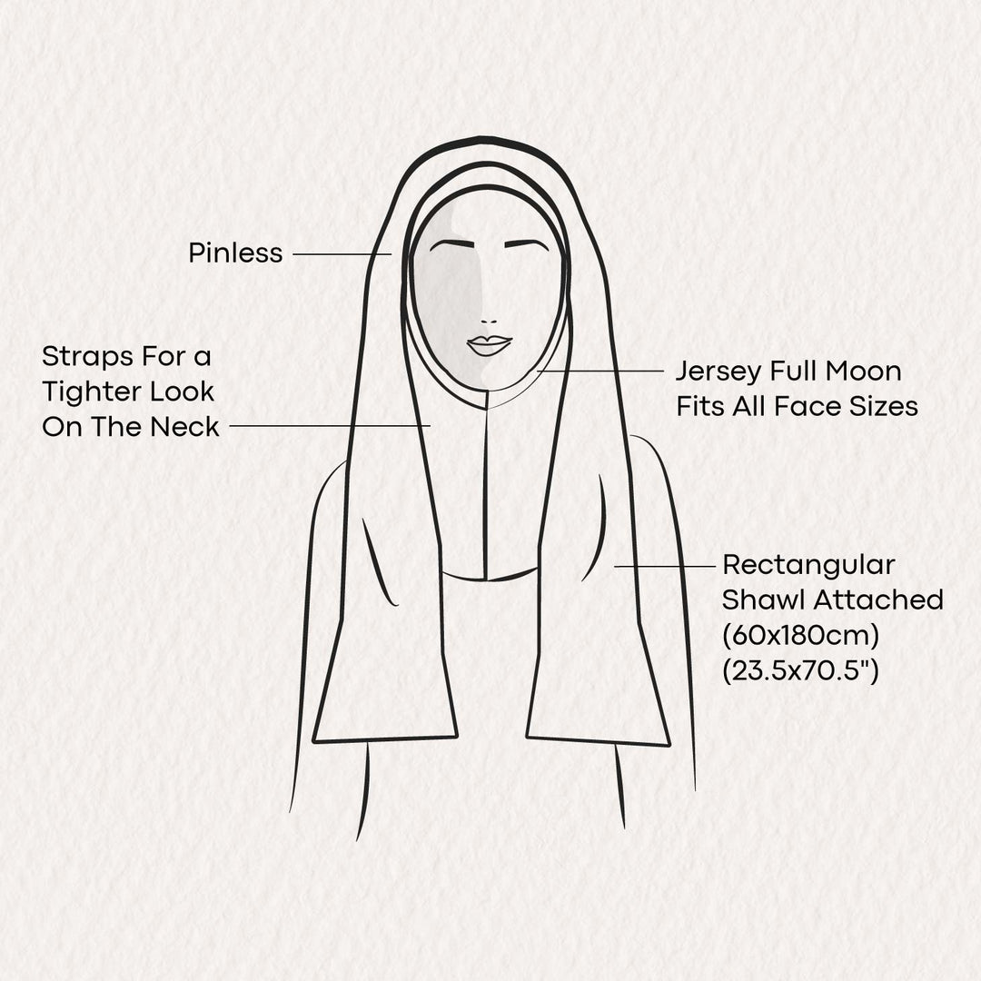 Introducing the newly updated Loose Vogue instant hijab style, designed to elevate your everyday look with its unmatched versatility. Whether you prefer a relaxed or a more face-framing style, this hijab has got you covered. This hijab features a 60 x180 cm shawl attached to an adjustable lightweight cotton lining, providing full coverage for your head and neck. The jersey trim at the forehead ensures maximum flexibility and comfort.