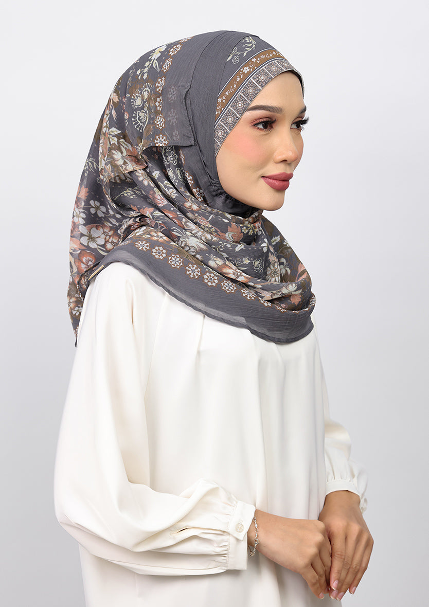 Elevate your style on the go with the 'Loose Freestyle' instant hijab set. This pre-stitched design features a loose relaxed style. It includes a 180 cm lightweight shawl, lined with 100% cotton voile, ensuring coverage, styling flexibility, and breathability.