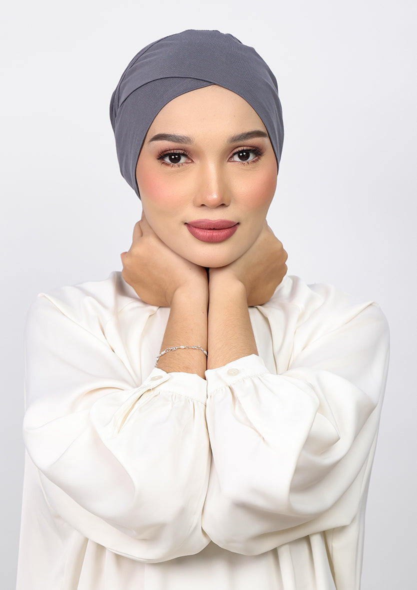 This instant hijab style is a pinless “wrapped” hijab that will let you achieve the loose hijab look without the extra layers. It features a loose wrap all around the forehead , and a hidden elastic under the chin to fit all head sizes.