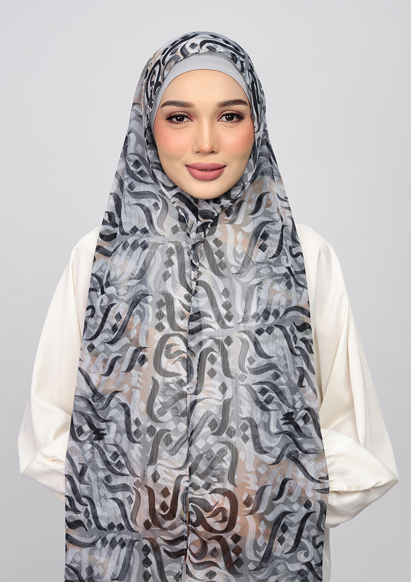 Elevate your style on the go with the 'Loose Freestyle' instant hijab set. This pre-stitched design features a loose relaxed style. It includes a 180 cm lightweight shawl, lined with 100% cotton voile, ensuring coverage, styling flexibility, and breathability.
